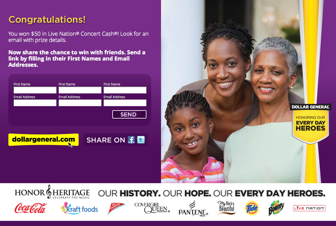 #34 - Online Contest - Dollar General Heritage - $50 Live Nation Gift Code ( I bought the Christmas Classics Blu Ray )
