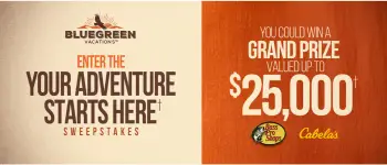 The BluegreenVacations Your Adventure Starts Here! Sweepstakes wants YOU to win a $25,000 prize!
