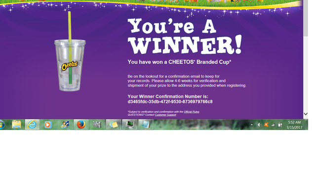 Congrats! I see there are a couple more cheetos sweepstakes listed I'm going to enter for. Wish me luck!