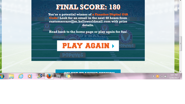 Popeye's/$10 Fanatics E Gift Code Win