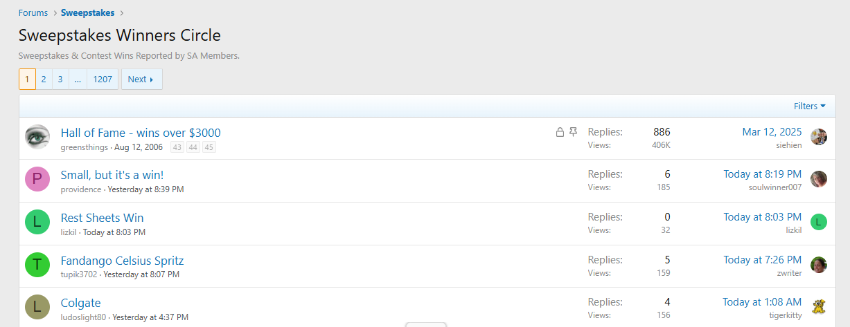 Sweepstakes Advantage, often abbreviated as SA, has built a reputation for reliability since its inception, aggregating thousands of active giveaways and fostering a supportive environment for participants. The Winners Circle subforum, accessible at https://www.sweepsadvantage.com/forum/forums/sweepstakes-winners-circle.11/, encourages members to post their victories, skipping introductory or sticky posts to dive straight into the celebrations. This approach ensures the focus remains on genuine wins, building trust among users who verify prizes through affidavits and tax forms when applicable. As an expert in online contests—with years of analyzing patterns in entry methods, odds, and prize distributions—I've seen how communities like this empower everyday people to turn free entries into tangible rewards. This spotlight: drawing from experienced sweepers' firsthand accounts, expert curation of active promotions, authoritative sourcing from the forum itself, and trustworthy details verified through member interactions.