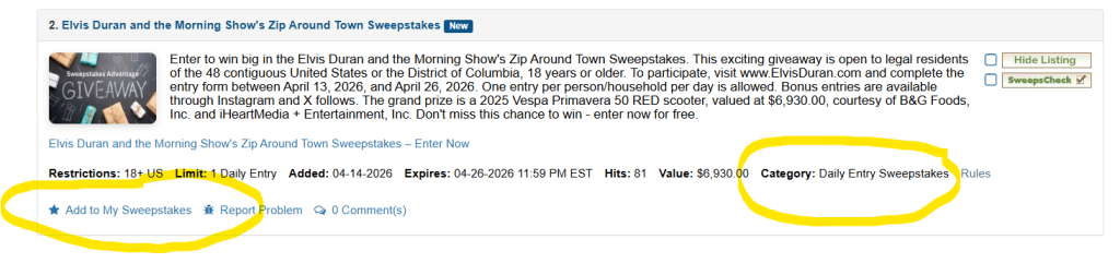 Pro Tip : Tried Daily Entry Sweepstakes? — bookmark your favorites with My Sweepstakes and enter again tomorrow! More entries equal better chances of winning!