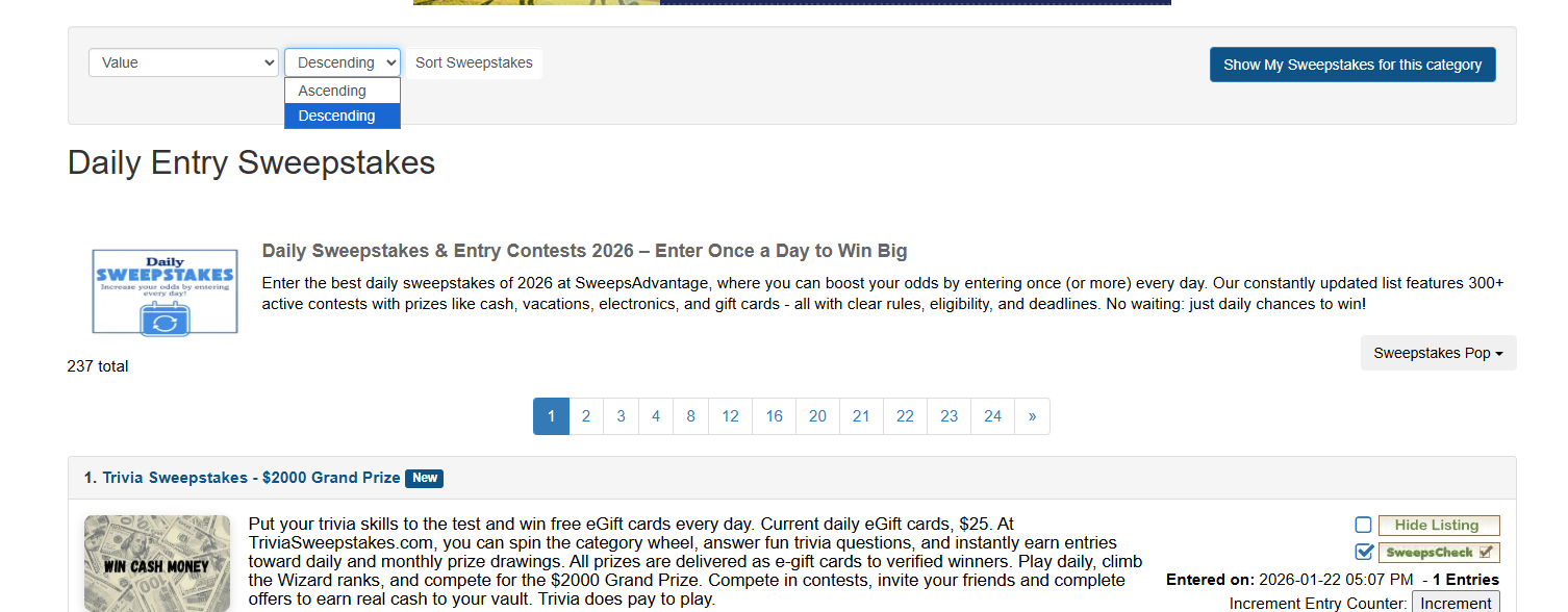 See all new: https://www.sweepsadvantage.com/new-sweepstakes